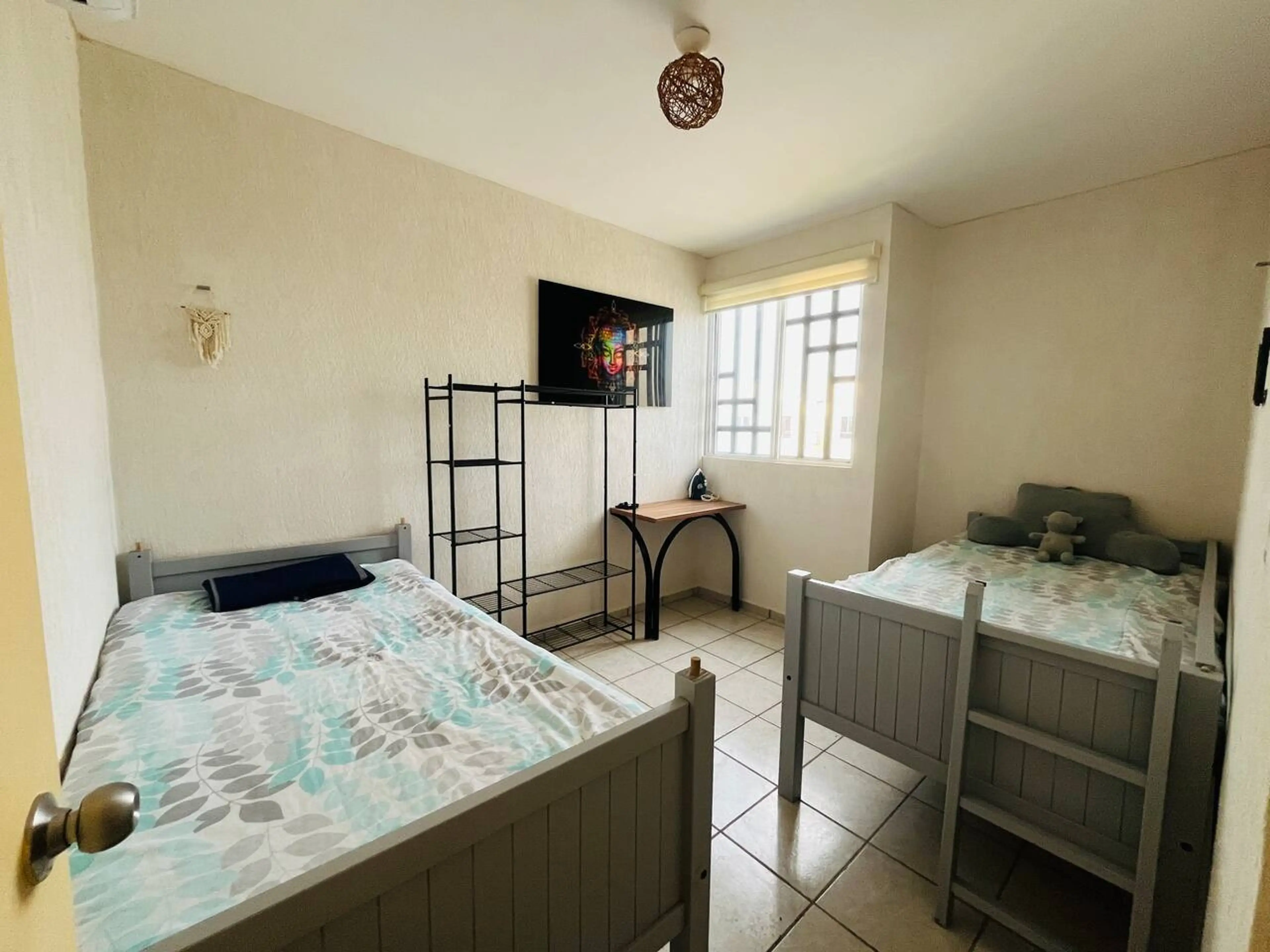 Departamento ideal para grupos de hasta 6 personas. Ubicado en último piso, te mantendra más fresco y privado. Cuenta con acceso à la alberca comunal a espaldas del departamento. Encuentras transporte publico a una cuadra y comercios a una calle. Todo listo para vivir tu festival sin gastar de mas.